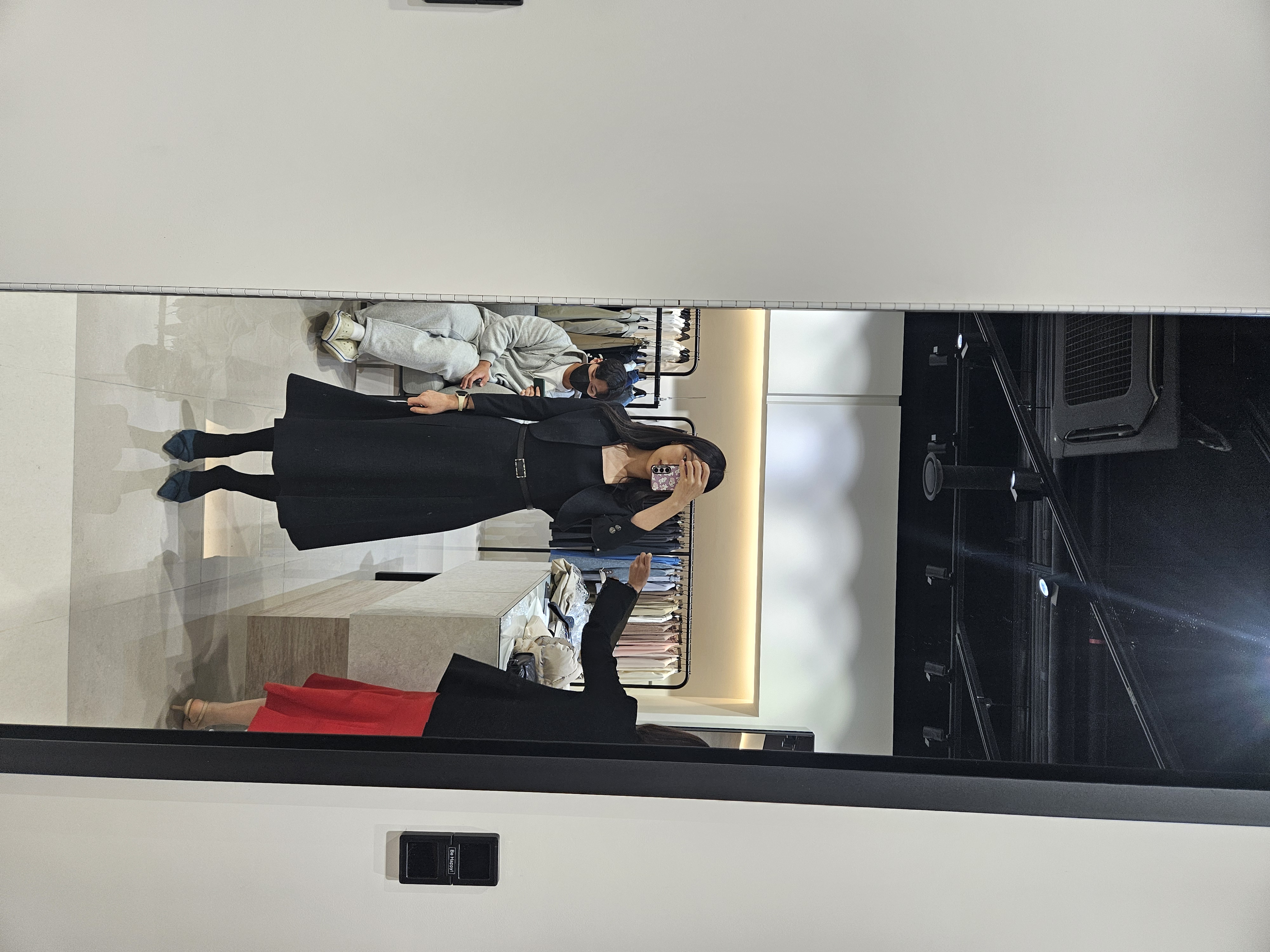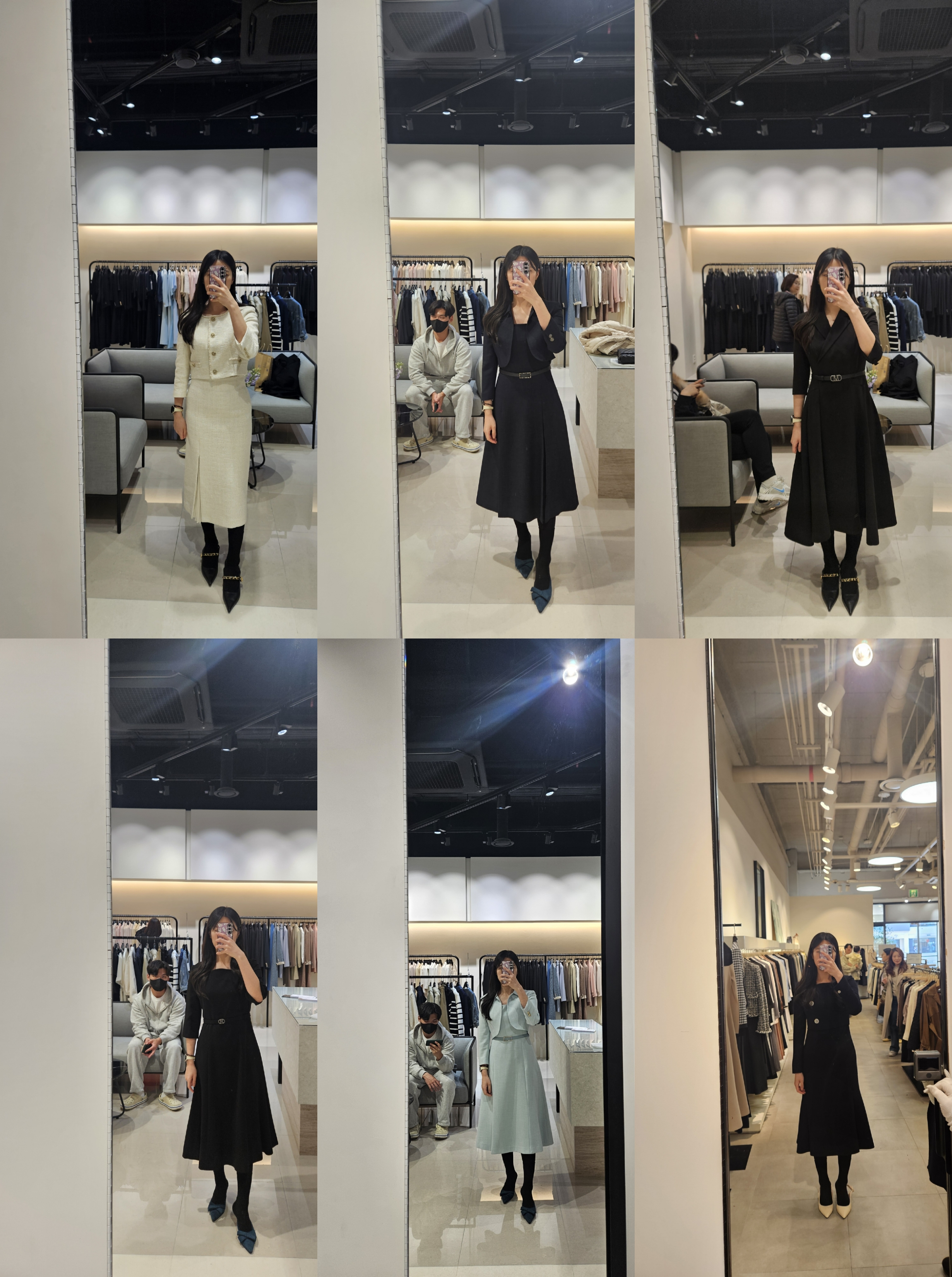 첫번째로 인터넷에서 미리 봐두었던 원피스가 있길래 입어봤다. 머메이드라인의 원피스 55사이즈인데 겨울 상품인지 소재가 톡톡해서 일단 탈락이고, 사이즈는 맞는데 스판끼가 없어서 불편했다.