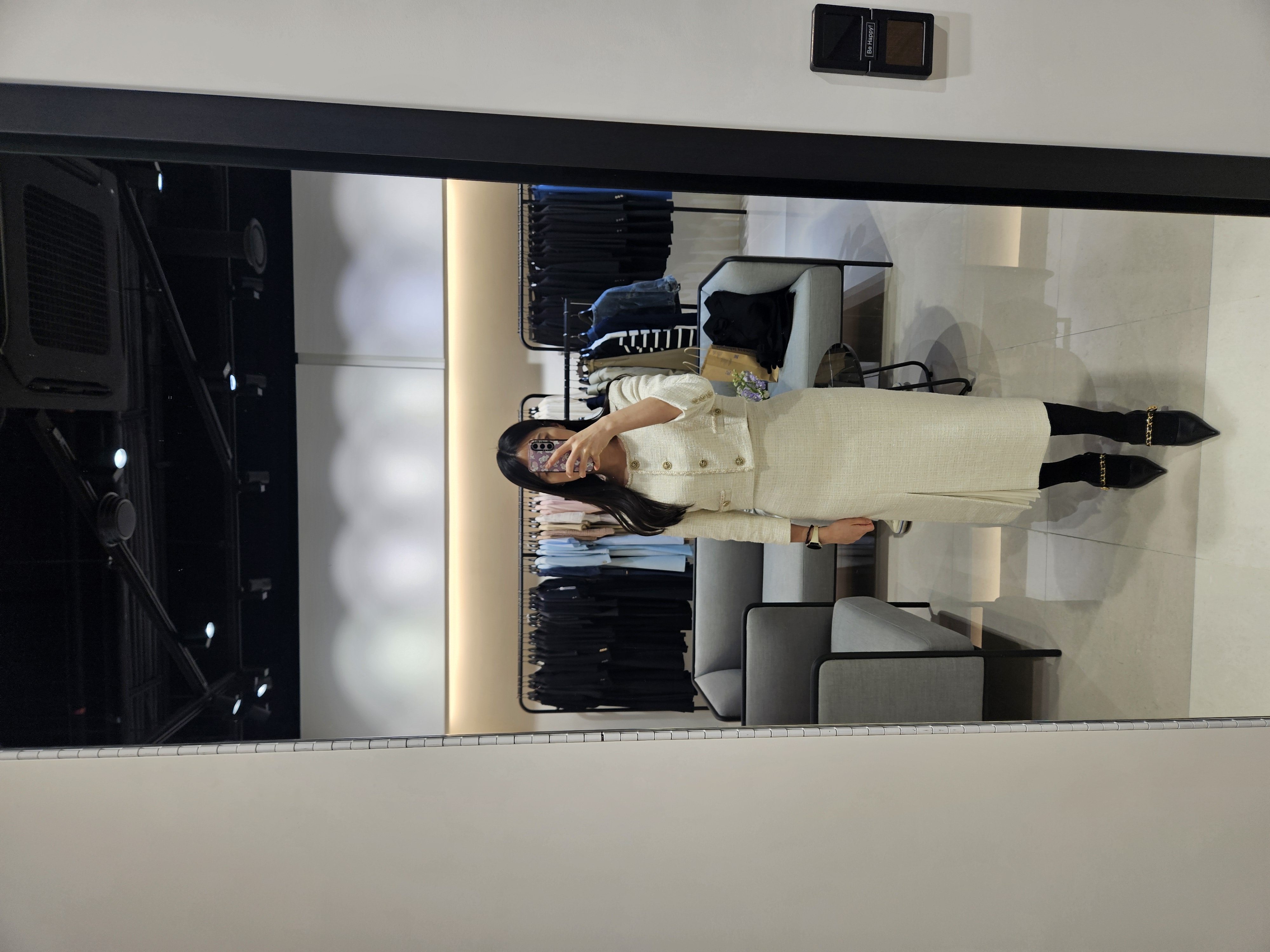 원피스를 입어보다가 너무 예쁜 트위드 투피스가 있길래 이것도 한번 입어봤다. 55사이즈인데 넘 편하고 예뻤다.