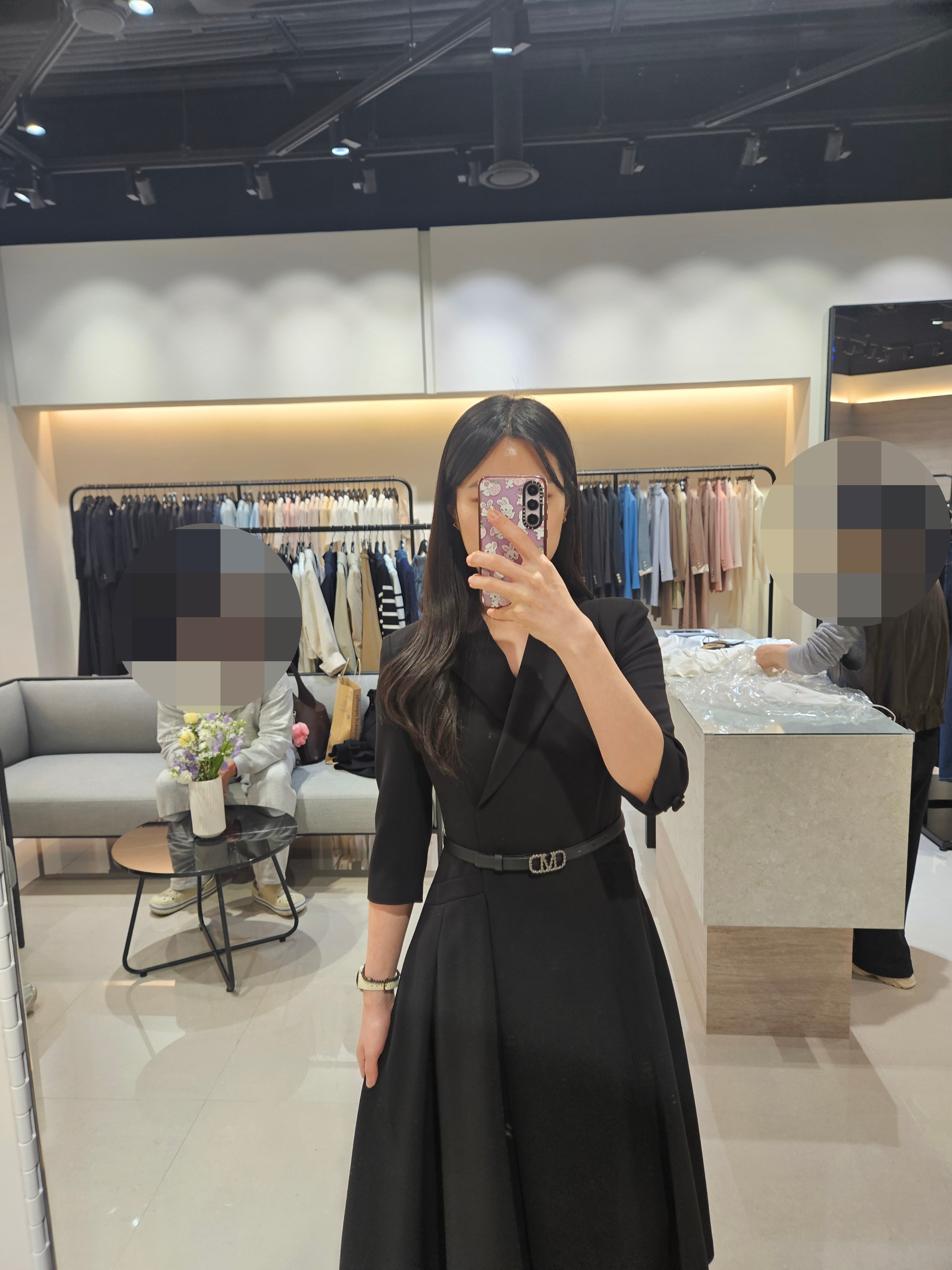 배고파서 쇼핑하다가 점심을 먹고 다시 미샤 매장에 방문했다. 미샤에서 옷을 사기로 격정하고 다른 원피스도 추천받아서 입어봤다. 근데 입어보는 원피스들이 다 예뻤음....이 원피스도 베이직하지만 원피스 치마부분이 정말 예쁘게 떨어졌다.