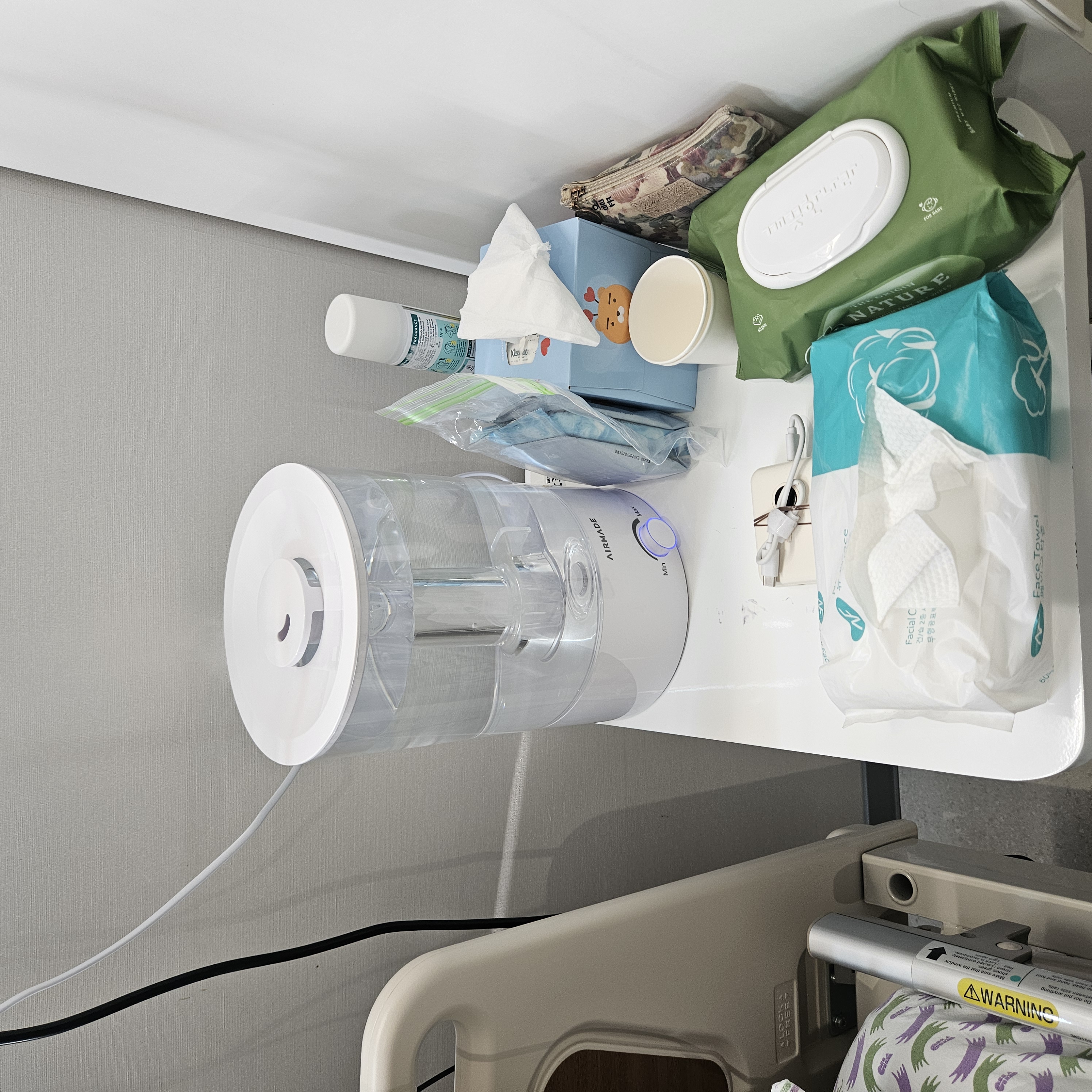 겨울에 수술을 하시는 분이라면 가습기는 무조건 준비하시는걸 추천드립니다. 저는 처음에 휴대용 가습기를 알아보다가 집에서 사용하던 4.5L 대용량 가습기를 들고갔는데요, 결론적으로 정말 잘한 선택이었습니다. 병원은 휴대용가습기로 커버 절대 안되는 건조함입니다. 아래 가습기를 머리 옆 탁자에 두고 24시간 빵빵하게 틀었더니 건조함 없이 입원기간을 지날 수 있었습니다. 가습기는 무조건 큰걸로!!