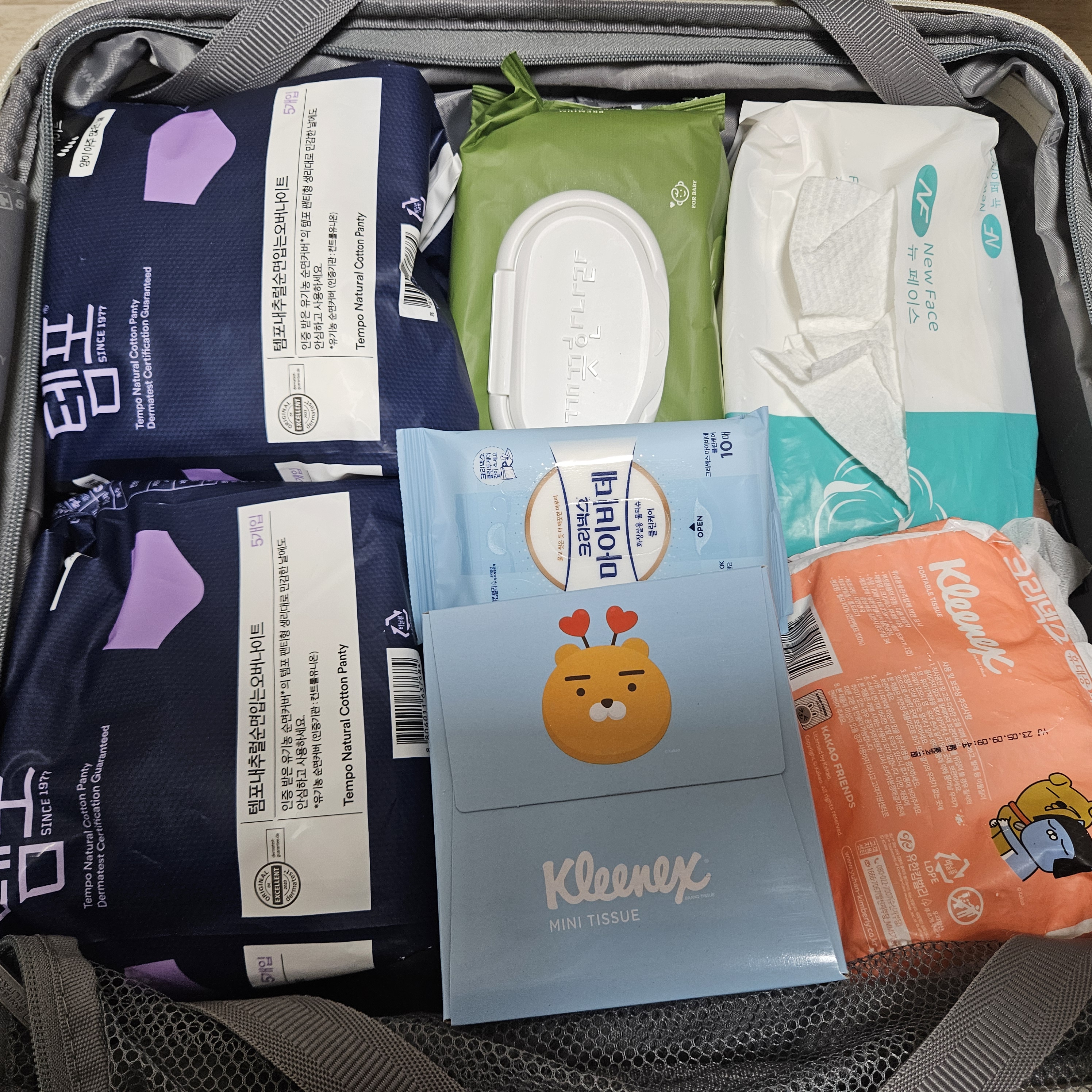 병원에서는 개인용 티슈가 꼭 필요한데 큰 갑티슈 말고 미니사이즈 갑티슈가 자리도 차지 안하고 좋았습니다. 4박 5일 일정이라면 미니갑티슈 1개 혹은 휴대용 티슈 1~2개로도 충분합니다.